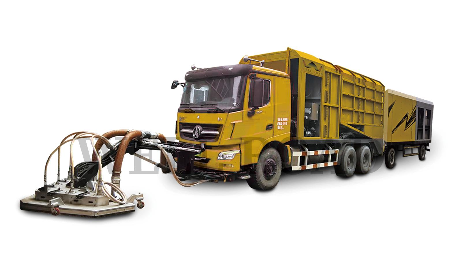 更高效的施工性能:主車+掛車組合式設(shè)計(jì),雙泵運(yùn)行,儲(chǔ)水、儲(chǔ)渣空間大,連續(xù)工作時(shí)間長,作用面寬,清除速度快。掛車摘除及加掛可根據(jù)施工需要進(jìn)行選擇,隨車雙配寬、窄兩種作業(yè)端,雙車組合+寬幅作業(yè)端可用于機(jī)場跑道除膠、除冰及路面拉毛、除污、翻新等;主車+窄幅作業(yè)端可用于標(biāo)線清除、清洗等。